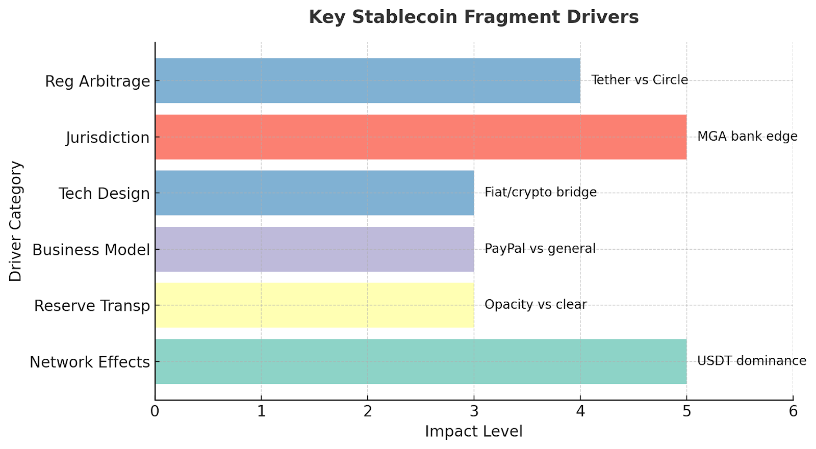 Fragmentation endures because incentives and constraints cut across pure network effects. Regulatory arbitrage remains the central engine: issuers optimize for domicile, licensing pathways, and supervisory posture, creating distinct regulatory clusters with real competitive edges. Some prioritize lighter oversight and speed-to-market; others trade pace for compliance credibility and institutional access. Technical differentiation compounds this: fiat-redeemable tokens, crypto-collateralized designs, and algorithmic approaches speak to different risk tolerances. Multichain deployment and ecosystem specialization—Solana-first, EVM-first, or a broad multi-chain stance—further segment liquidity, particularly when bridges introduce security and operational risk that discourages seamless flow.