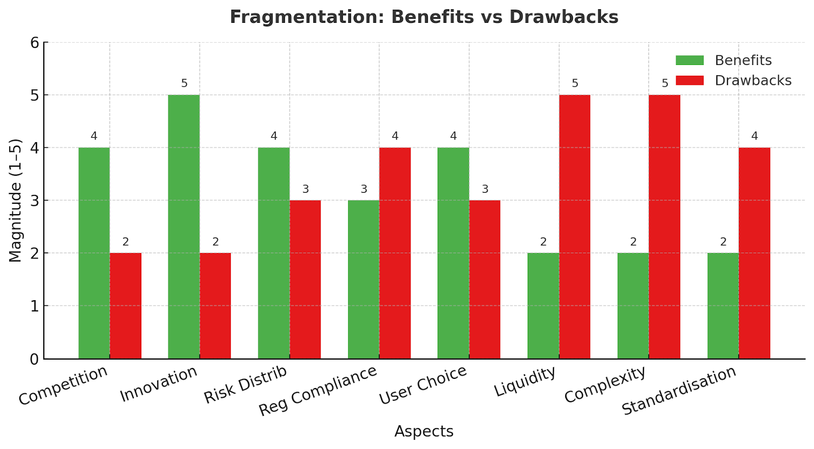 Yet fragmentation also buys the market valuable real options. Competitive pressure pushes fees lower, redemptions faster, attestations tighter, and reserve reporting more transparent. Systemic risk is diversified because a single issuer shock—or a single bank exposure—doesn’t automatically cascade when credible substitutes exist. Parallel innovation flourishes in this environment: collateral models, programmability features, and privacy primitives can be tested in market without putting the entire category at risk.